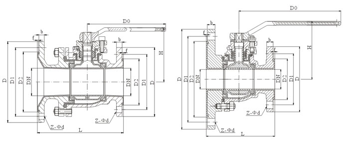 DN(mm) | L | D | D1 | D2 | f | b | Z-Φd | Do | H |